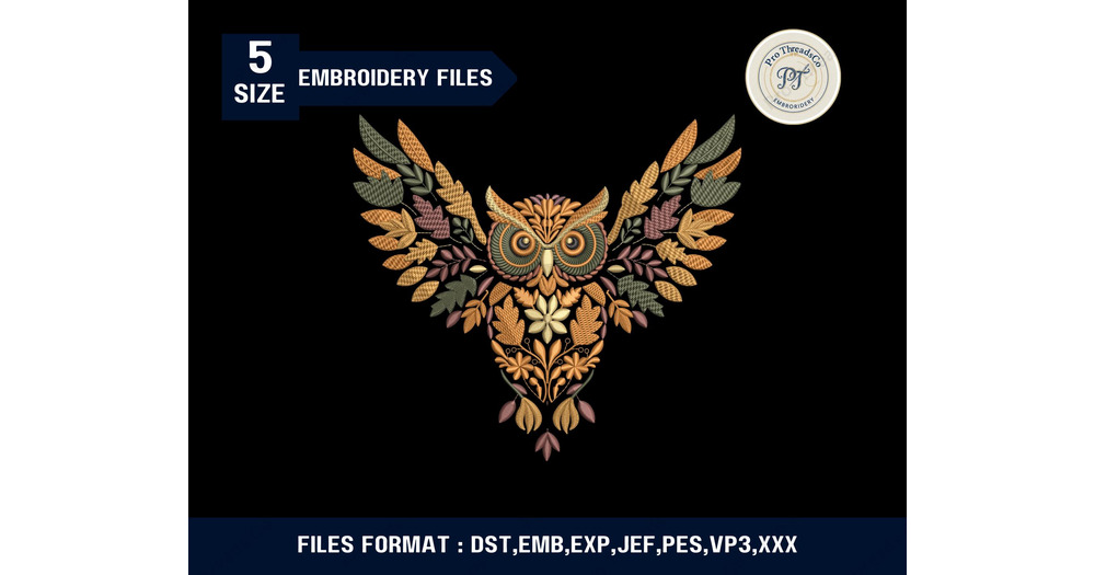 Autumn Owl Machine Embroidery Design | Fall Woodland Bird Pattern | Thanksgiving PES Embroidery File