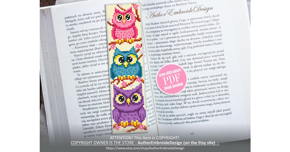 Owl bookmark cross stitch pattern PDF download Funny birds cross stitch chart, Cute bookmark pattern