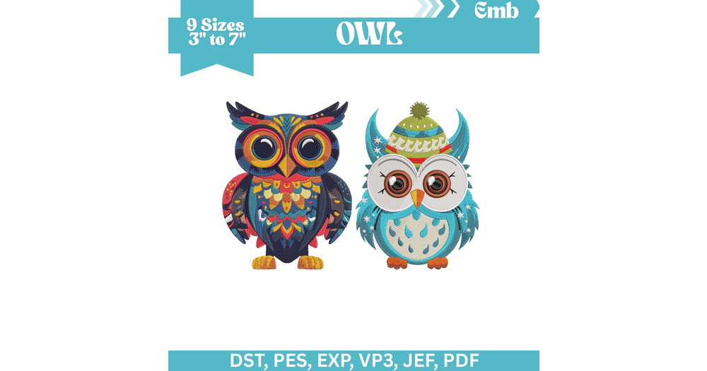 Owl Embroidery Design, Bird Machine Embroidery Files, 9 Sizes, Instant Download