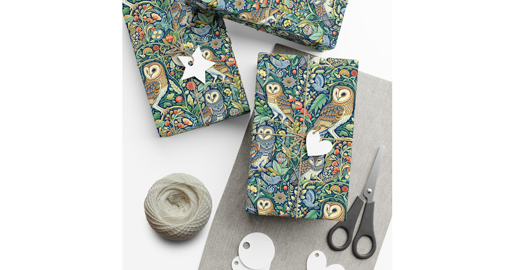 Owls, Great Horned Owl, Barn Owl, Tapestry, Vintage Floral Birthday Christmas Holiday Wrapping Paper