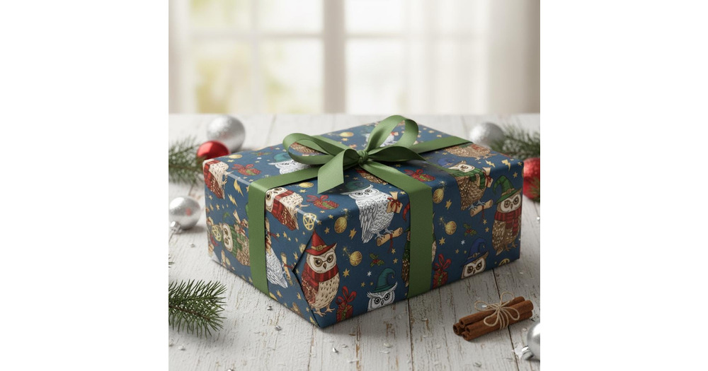 Magical Owl Christmas Wrapping Paper | Wizard Holiday Gift Wrap | Enchanted Snowy Owl