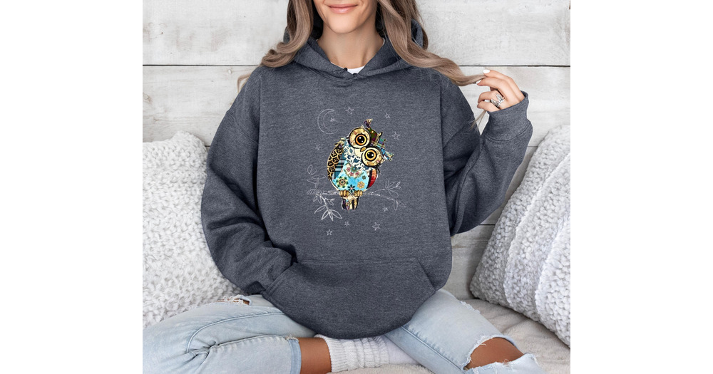 Boho Owl Hoodie: Whimsical Animal Graphic Pullover