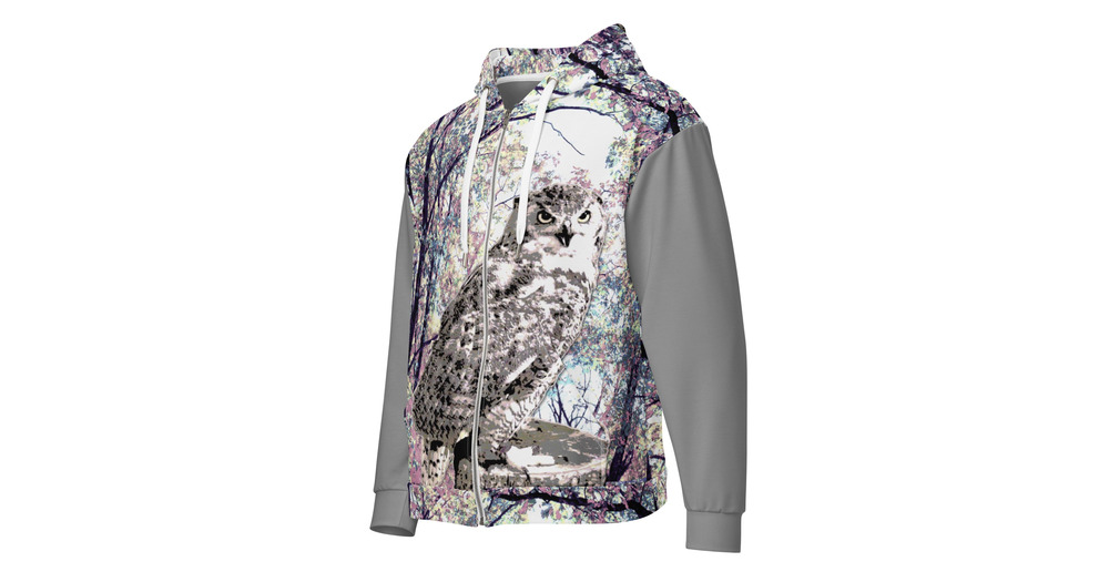 Owl Hoodie Jacket: Wildlife Theme, Dreamy Muted colors, Unisex sizing, Bliss Art Style, 2XS to 6XL