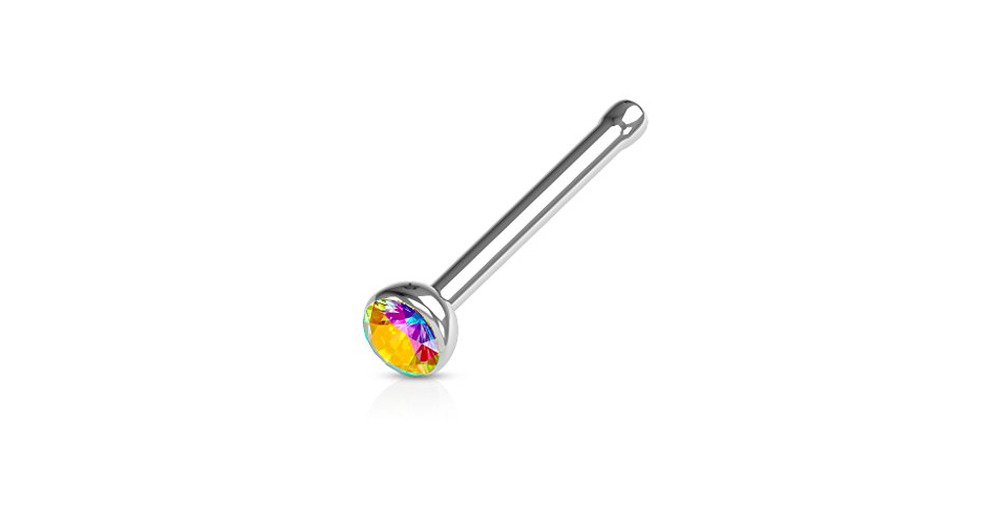 Pierced Owl 20GA Stainless Steel Press Fit CZ Crystal Gem Nose Bone Stud (Aurora Borealis)