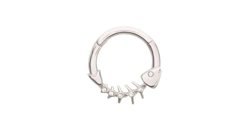 Pierced Owl 14-16GA 316L Stainless Steel CZ Crystal Lined Fishbone Hinged Segment Clicker Ring (1.6m