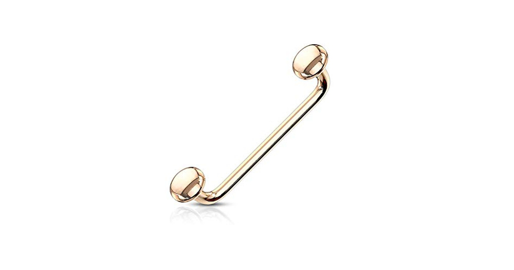 Pierced Owl Flat Disc End 90 Degree Bent Staple Barbell Tongue Ring (Rose Gold Tone)
