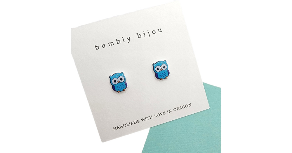 OWL (Blue) Earrings / Hypoallergenic Titanium Posts / Blue Owl Birthday Gift Hypoallergenic Bumbly B