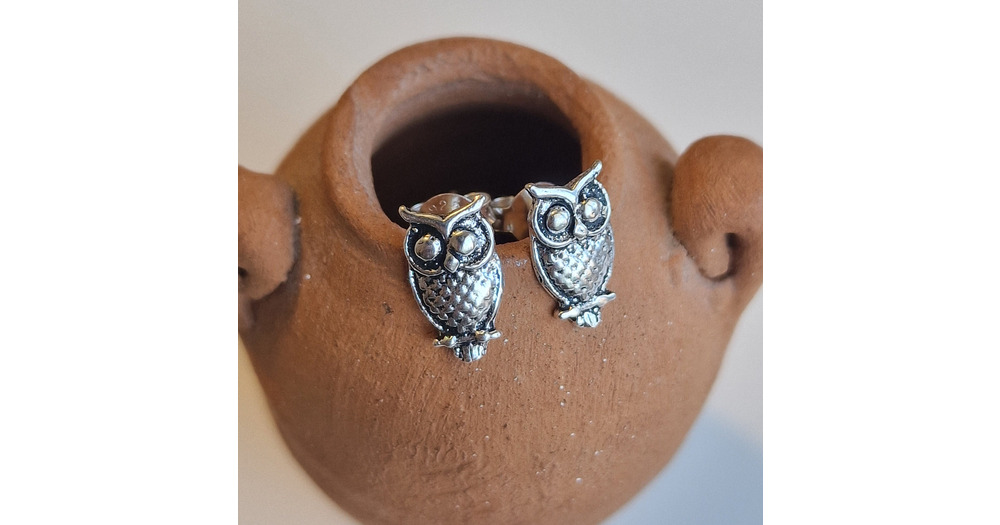 Sterling Silver Owl Studs: Handmade Animal Lover Earrings