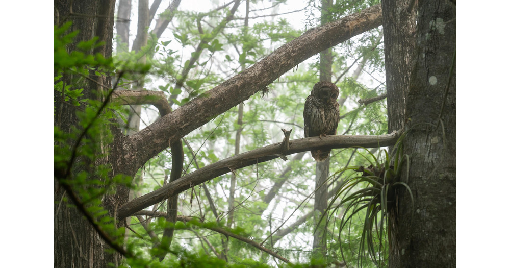 Wildlife Barred Owl (Strix varia georgica) on a Misty Morning in the Fakahatchee Strand, Florida Pho
