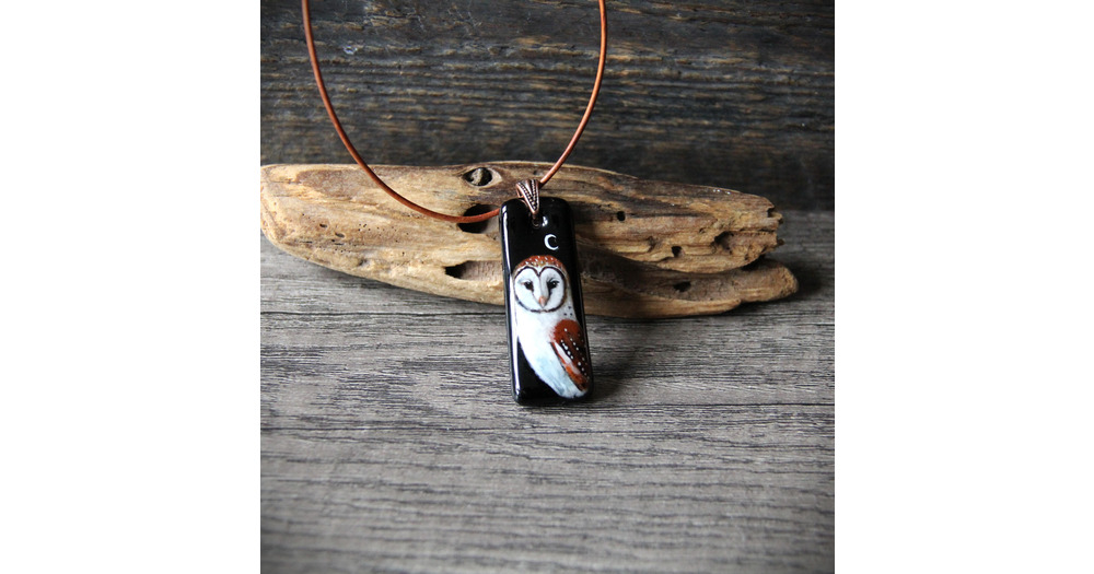 Beautiful barn Owl in the night necklace - fused glass pendant by FannyD