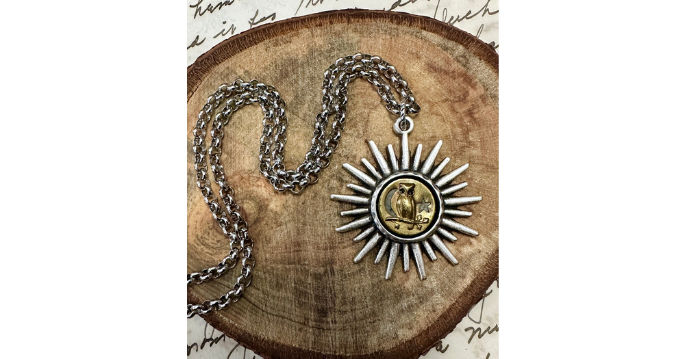 Celestial Owl Victorian Button Starburst Setting Necklace
