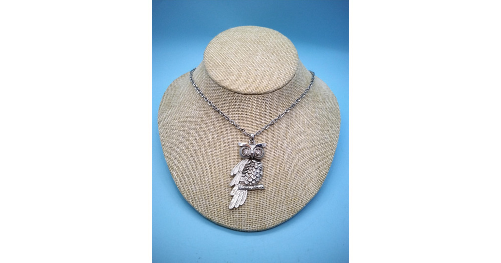 Jewelry, Owl Pendant And Chain, Faceted Rhinestone, Rhinestone? Eyes, Silver Tone Pendant, Silver To