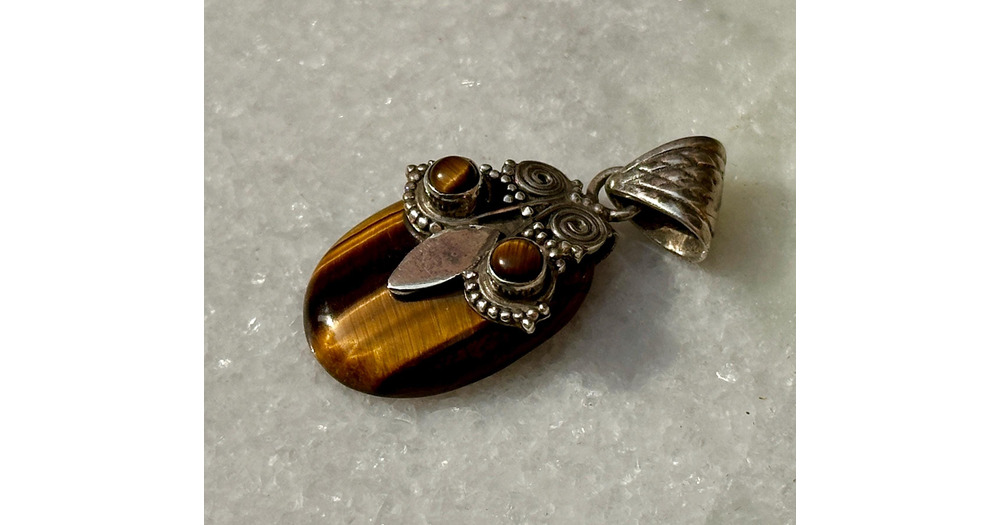 Vintage Sterling Silver Tiger's Eye Owl Pendant - Wisdom & Protection