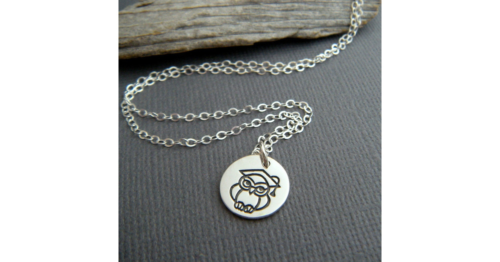 Sterling Silver Owl Graduation Cap Necklace: Wisdom Jewelry Gift