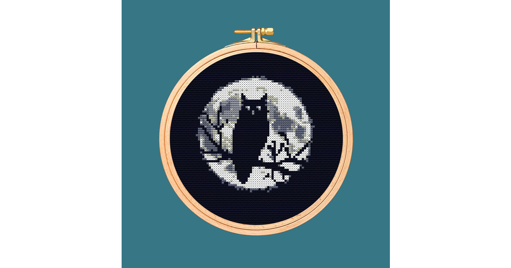 Moon and Owl halloween cross stitch pattern. downloadable digital design.