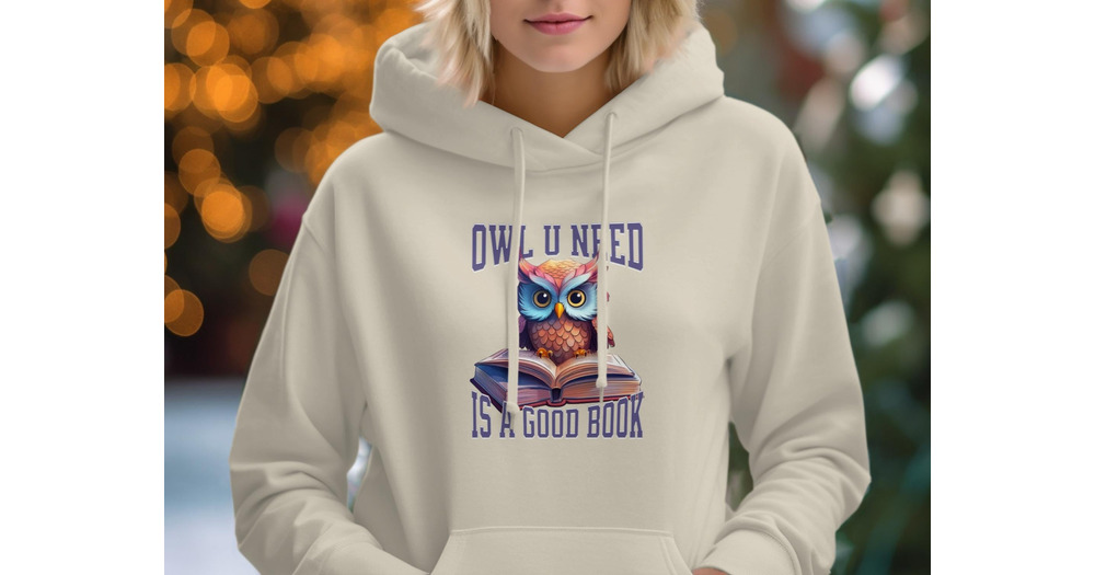 Owl U Need is a Good Book Hoodie, Cute Animal Hoodie, Book Lover Gift, Cozy Hooded Sweatshirt, Readi