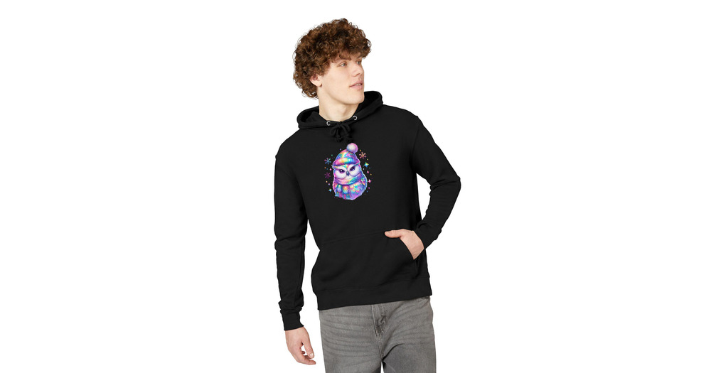 Colorful Owl Design Unisex French Terry Hoodie, Cozy Gift for Winter, Cute Animal Sweatshirt, Perfec