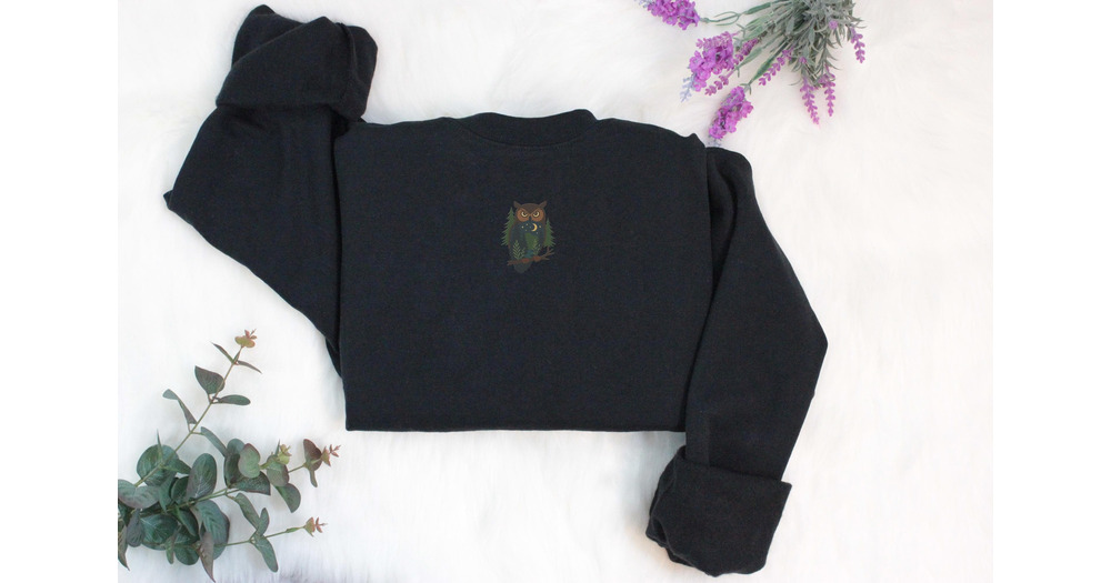Night Owl Embroidered Sweatshirt Gift, Embroidered Handmade Cute Unisex Crewneck Long Sleeve Pullove
