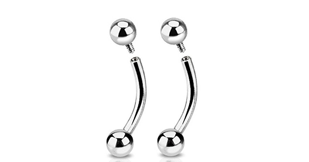 Pierced Owl 16GA 316L Stainless Steel Single Side Internally Threaded Curved Barbells, Sold as a Pai