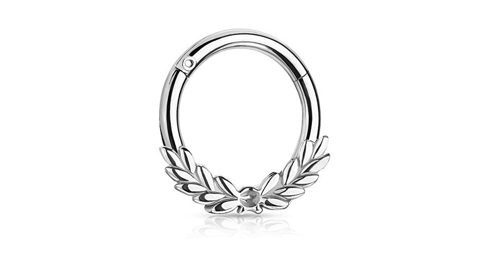 Pierced Owl 16GA Stainless Steel Laurel Leaves Front Septum Cartilage Helix Daith Hinged Segment Cli
