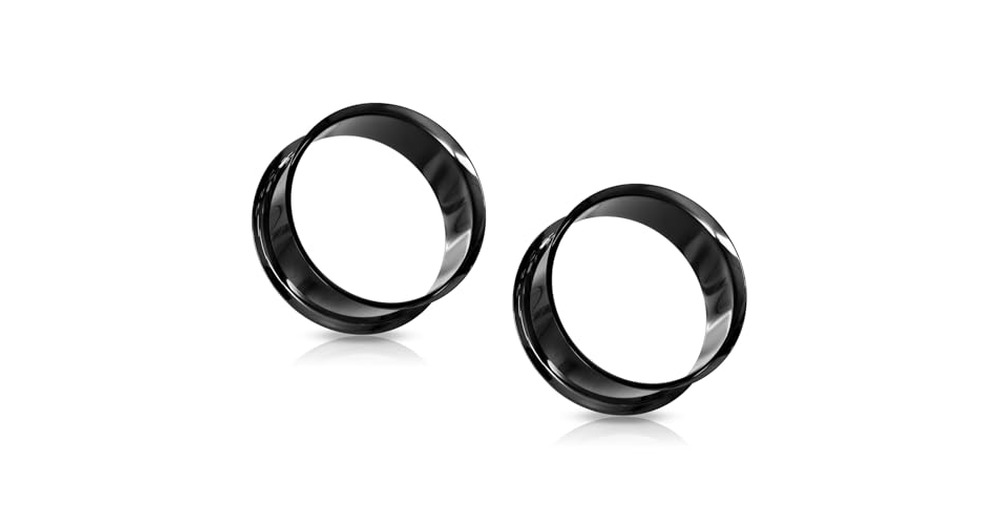 Pierced Owl Black Double Flared Tunnel Plugs in 316L Surgical Steel with Titanium IP, Sold as a Pair