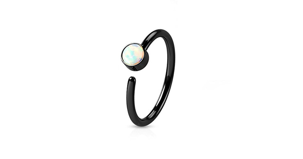 Pierced Owl 20GA 316L Surgical Steel White Synthetic Opal Set Cartilage Helix Nose Ring (Black)