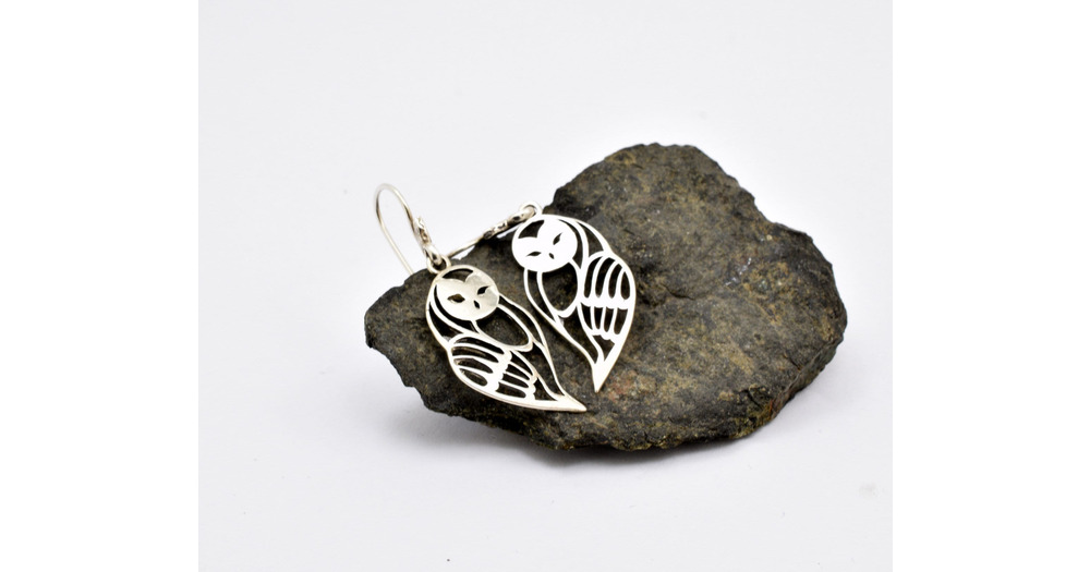 Owl dangle earrings from sterling silver - dangle cut out silhouette owl bird animal jewelry cute gi