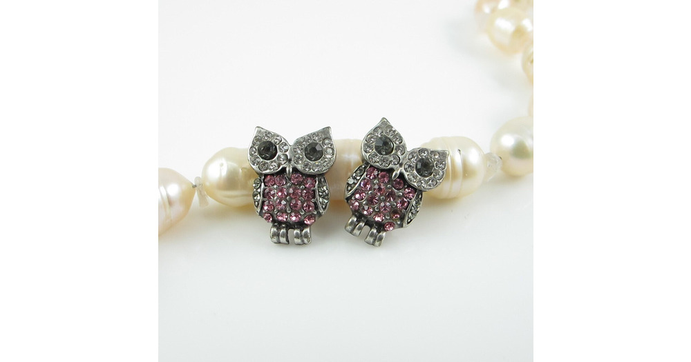 Pink Rhinestone Owl Stud Earrings, Bird Post Earrings, Halloween, Autumn, Fall, Bird Jewelry