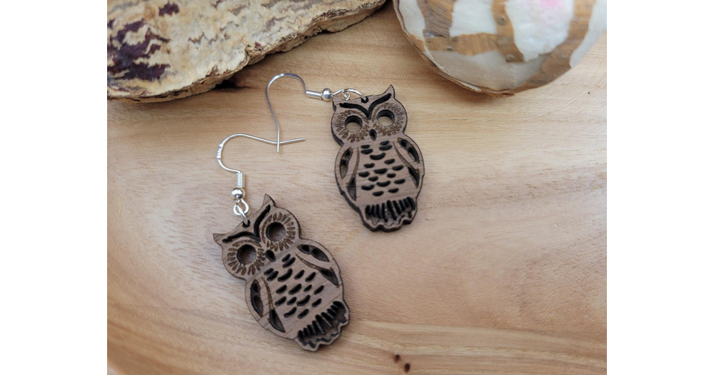 Handmade Walnut Wood Owl Earrings: Lightweight Boho Dangle Jewelry