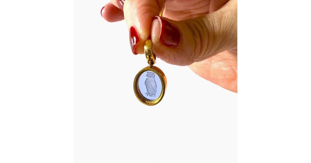 Owl Italian Intaglio Earrings Custom Setting Huggie 18k Cornflower Blue