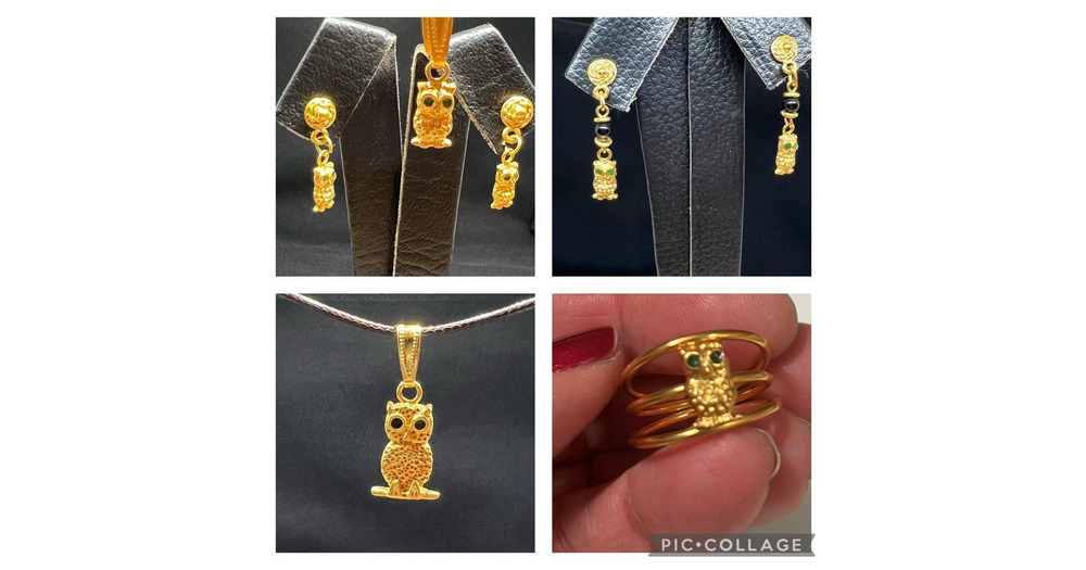 precolumbian jewelry. owl with green stone earrings, pre colombian pre colombinos 24kt gold plated