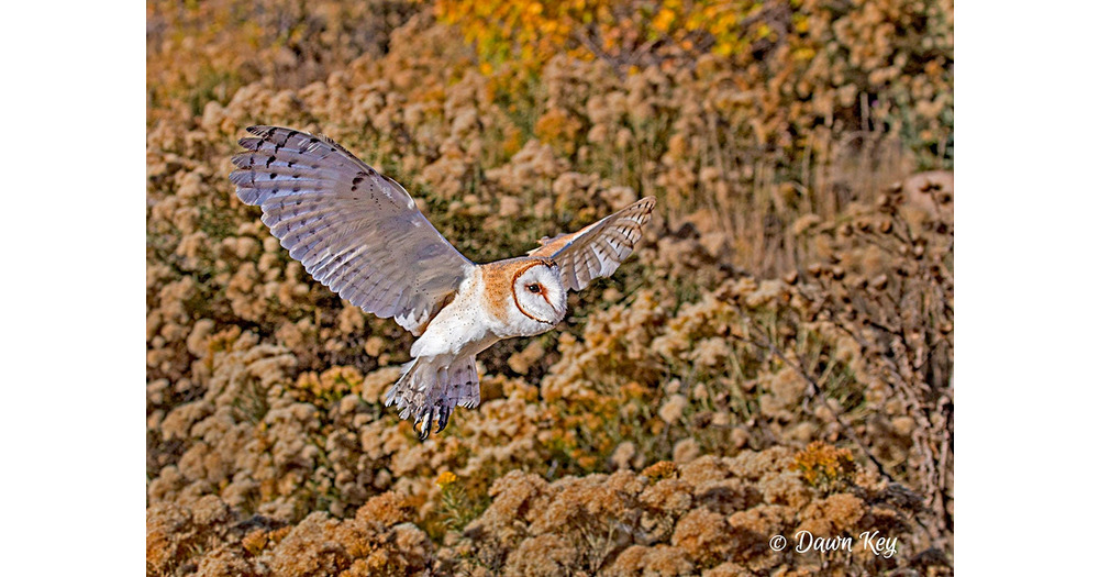 Barn Owl in Flight Fall Colors