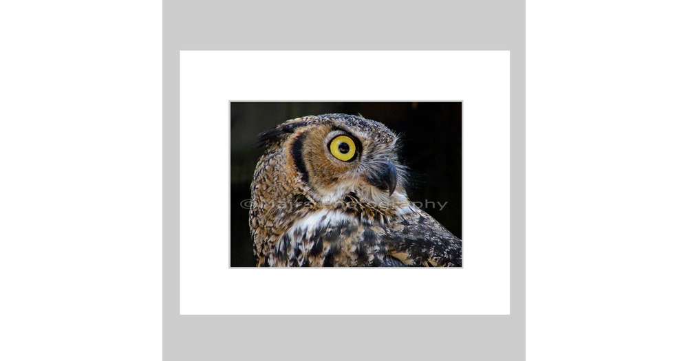 Nursery Decor, Owl Bird Nature, Great Horned Owl, Black Gray Brown, Fine Art Photography matted &