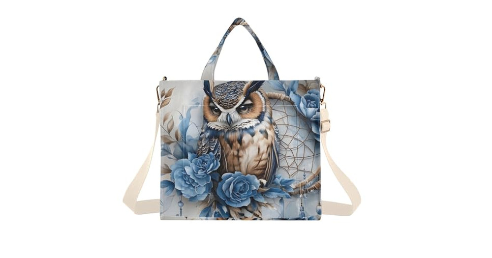 YMXFXP Tote Bag Owl Dreamcatcher Blue for Women - Large Corduroy Handbag for Travel Shopping S