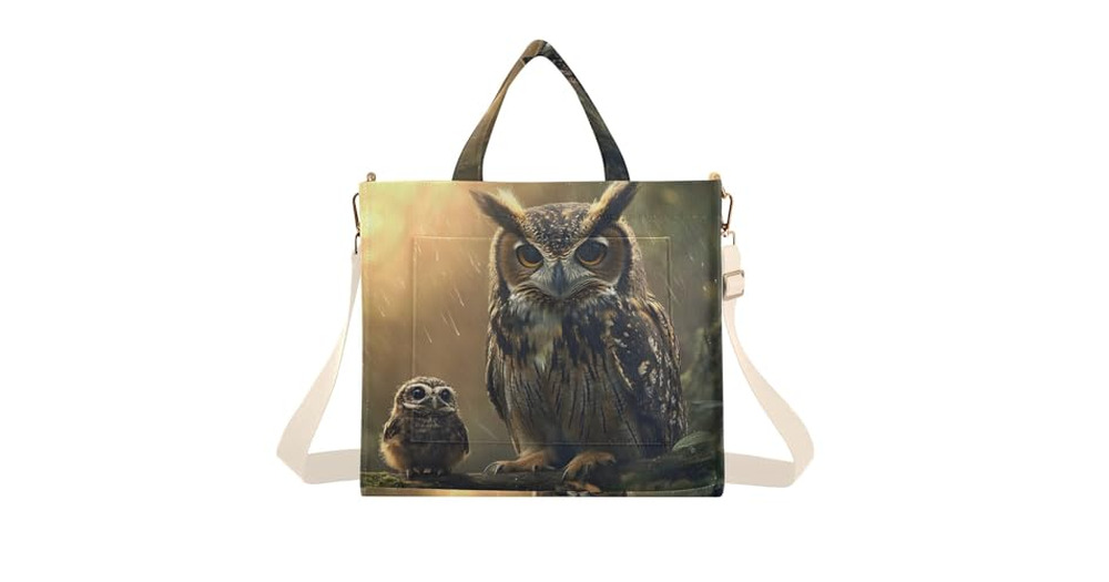 YMXFXP Owl Rain Branch Tote Bag for Women - Large Corduroy Handbag for Travel Shopping S