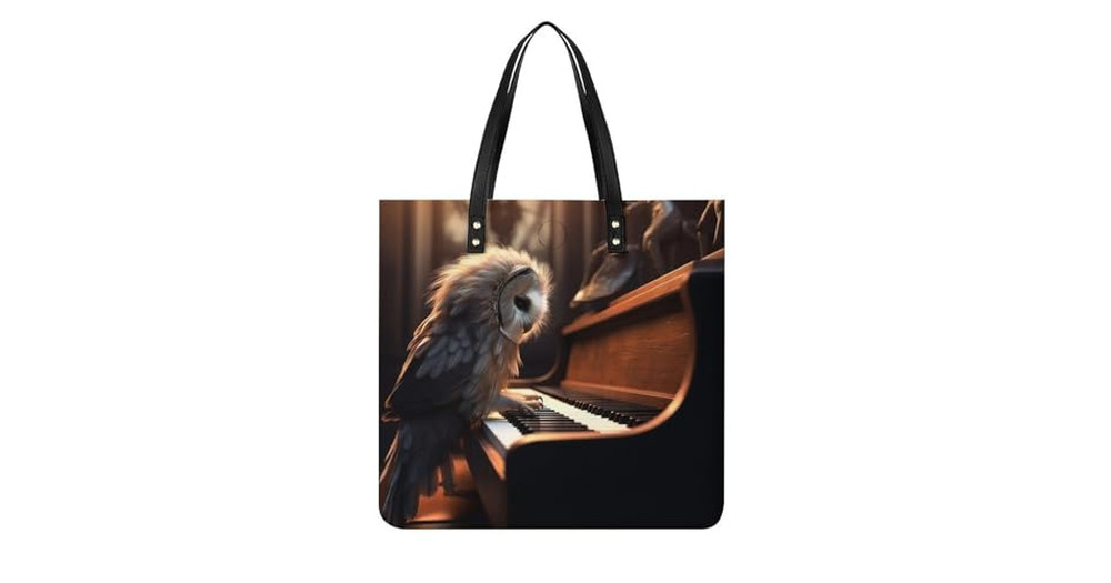 BWQJKUO Fashionable Large-capacity Owl Plays Piano Printed Leather Handbag, A Versatile Choice for C