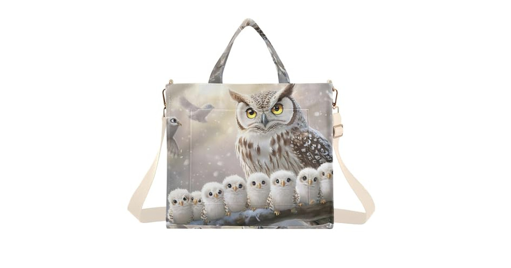 YMXFXP Owls Branch Winter Tote Bag for Women - Large Corduroy Handbag for Travel Shopping M