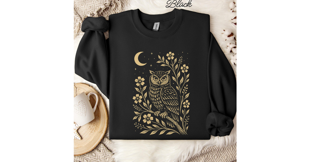 Moonlit Owl Sweatshirt Gildan 18000: Cottagecore owl moon phase sweater gift for nature lover