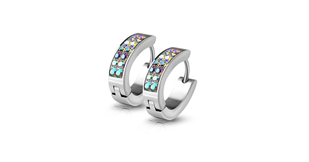 Pierced Owl 20GA Stainless Steel Crystal Lined Huggie Hoop Earrings (Silver Tone)
