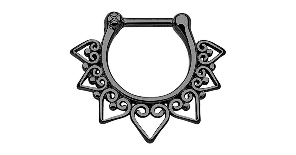 Pierced Owl 16GA 100% Stainless Steel Tribal Fan Septum Clicker Ring (Black)