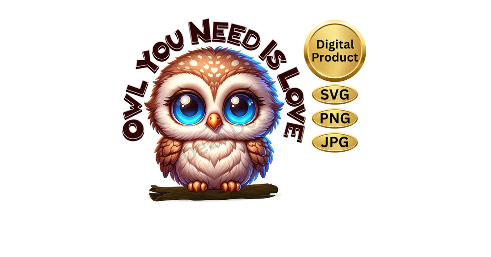 Cute Owl SVG, Digital Owl PNG, Digital JPG File, Commercial Use on Apparel, Art Prints, Etc.