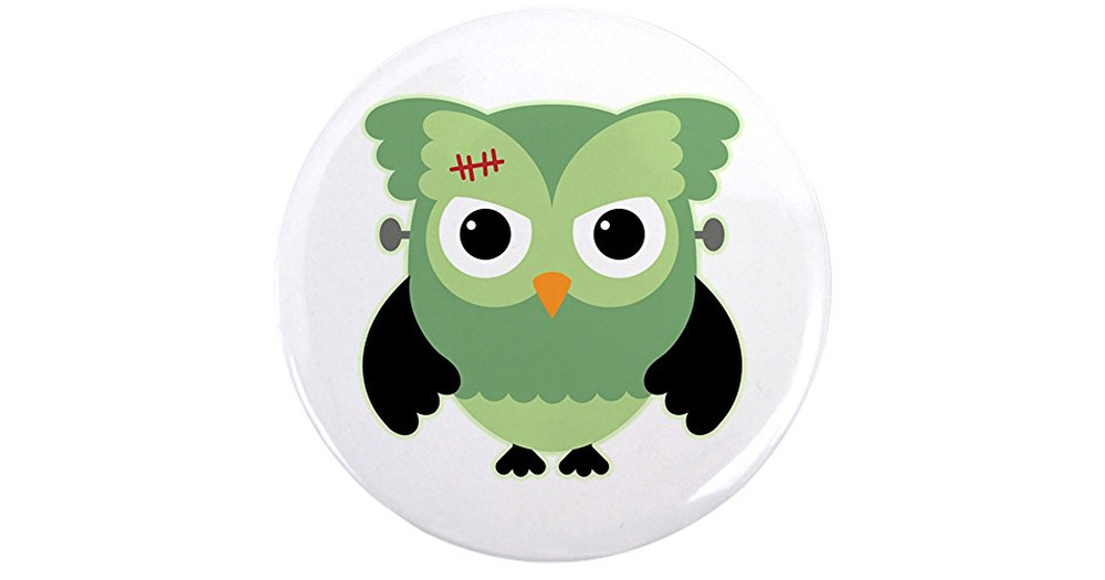 2.25 Inch Button Spooky Little Owl Frankenstein Monster