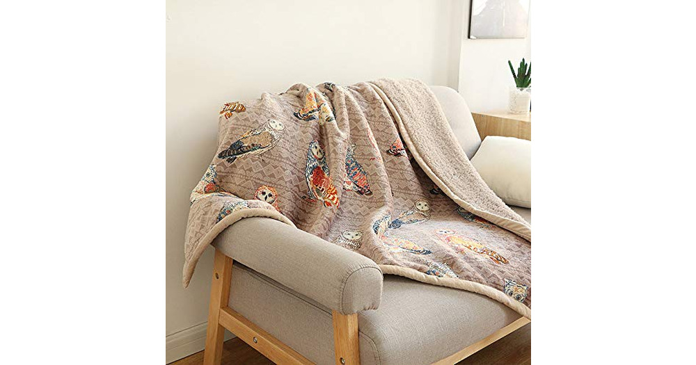 UKELER Flannel Sherpa Throw 80'' x 60''- Cute Colorful Owl Design Soft Plush Fla