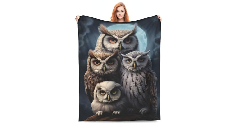 amepay Cute Owl Blanket for Adults Kids Gifts for Owls Moon Lovers Flannel Throw Blankets Soft Comfy