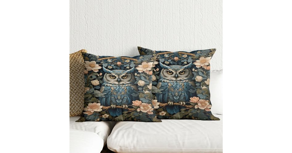 William Morris Throw Pillow Covers 18x18 Inch Gothic Owl Throw Pillows Covers for Couch Vintage Mood