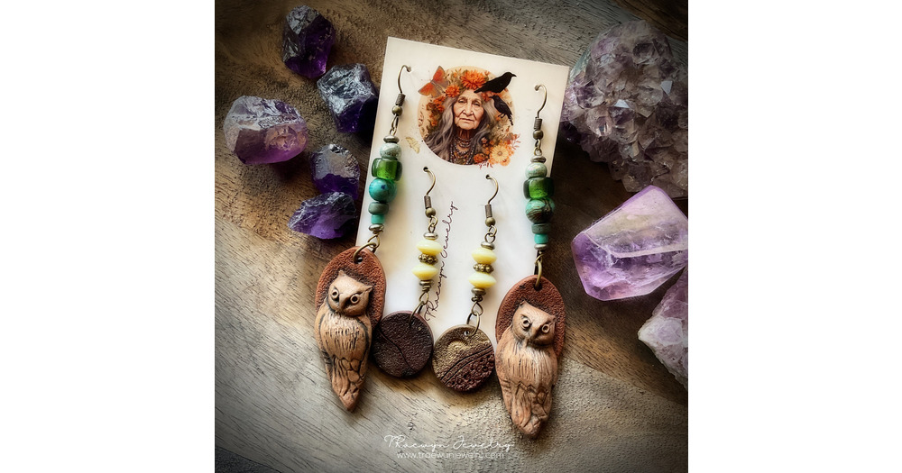 Clay Earrings Set. Light Weight Dangle Earrings. Owl.