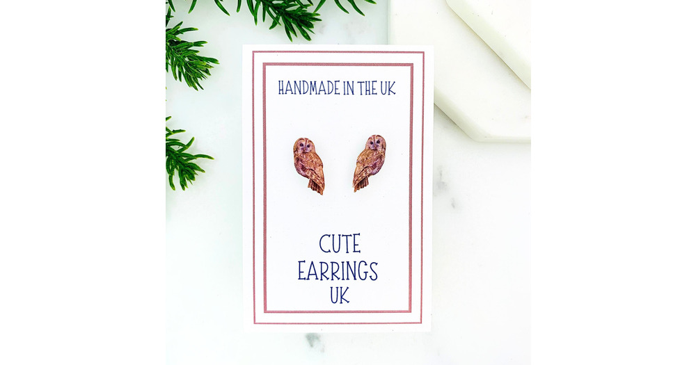 Tawny Owl Stud Earrings, Handmade Hypoallergenic Bird Jewellery.