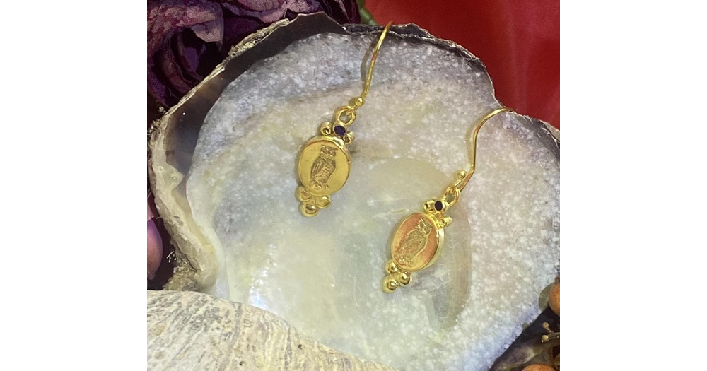 Ancient Roman, Greek, and Egyptian Coin Owl Dangle Vintage Earrings - 925 Sterling Silver - Lucky Ea