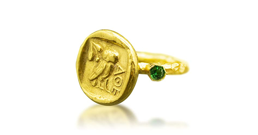 Athena Owl Coin Signet Ring | 24K Gold Plated 925 Sterling Silver | Greek Owl Coin Ring | Roman Art