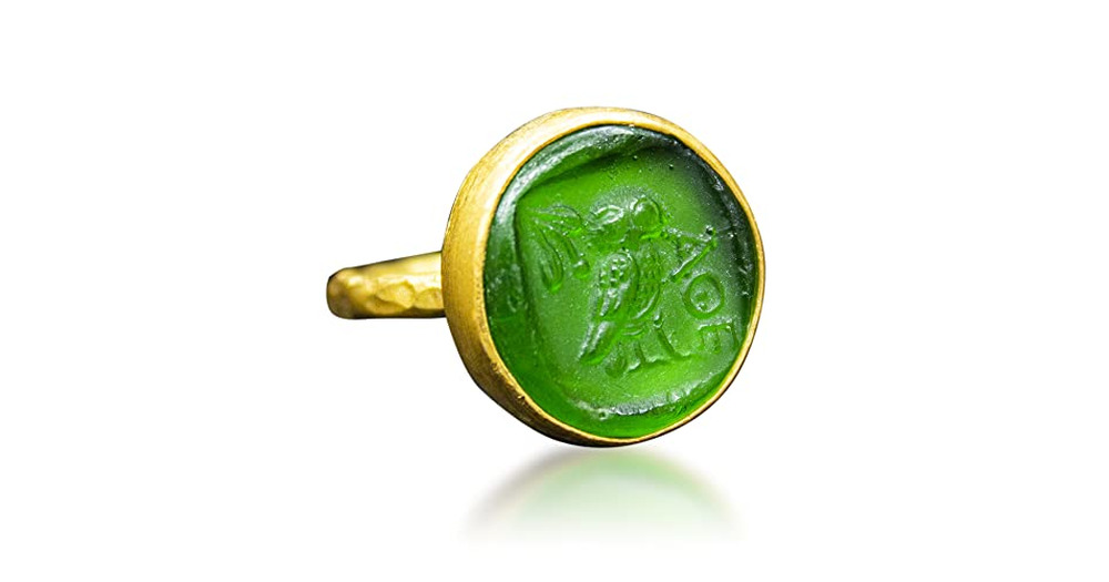 Ancient Greek Athena Owl Intaglio Glass Ring | 925 Sterling Silver | Roman Art Owl Carving Ring | Da